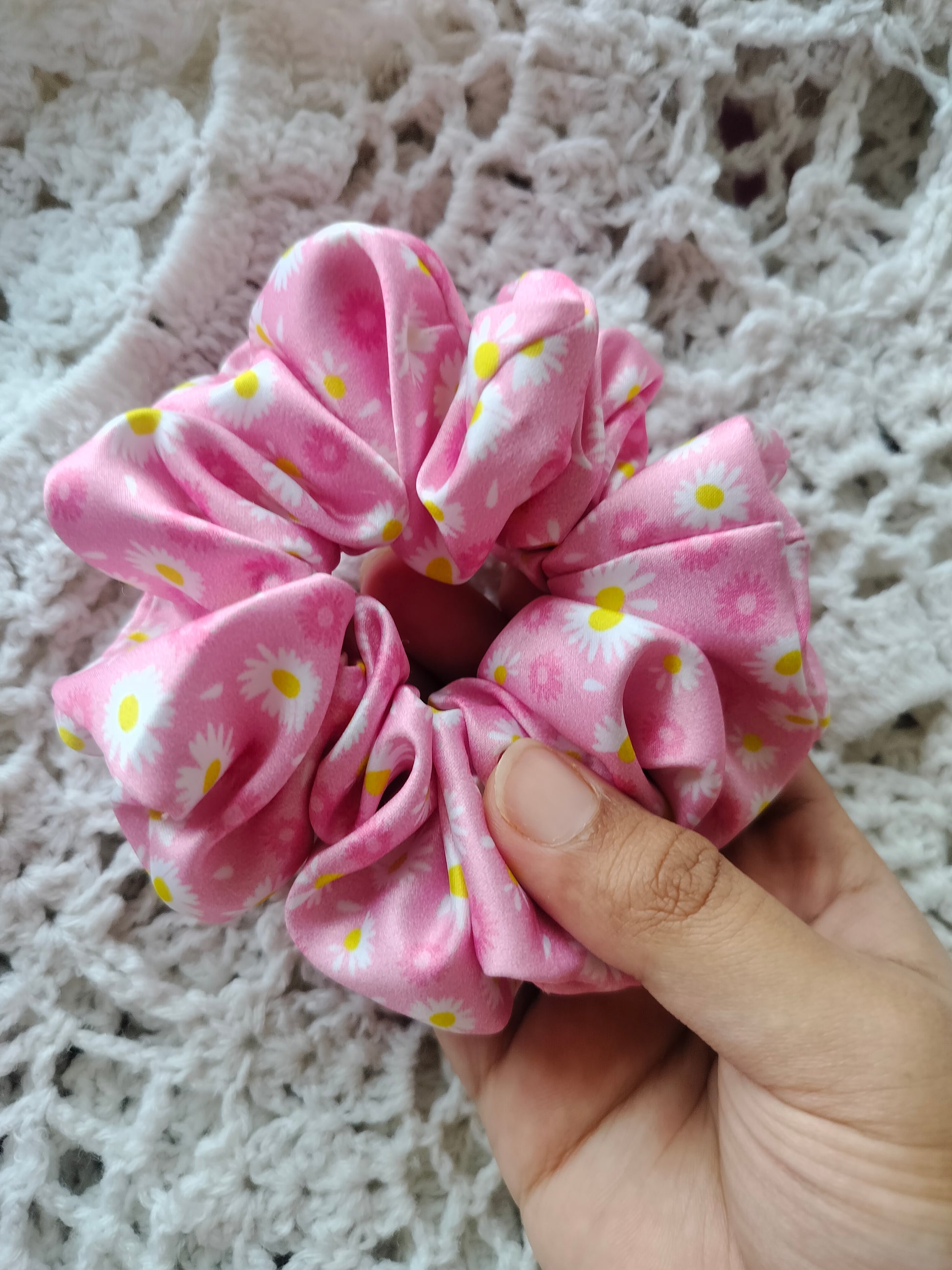 Pink Daisy Floral Scrunchie